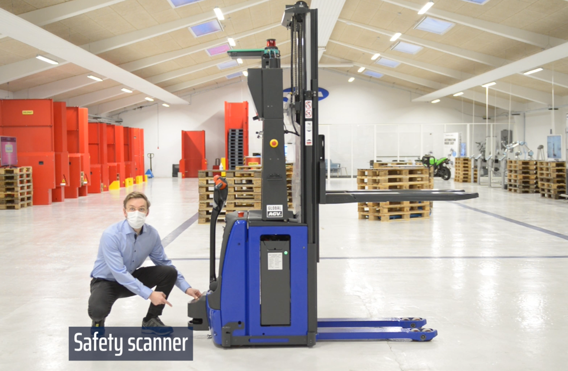 - Marshalling detekteringsscanner - placeret på bagsiden af AGVen, hvilket giver mulighed for sikker og effektiv afhentning og aflevering i anlagte baner