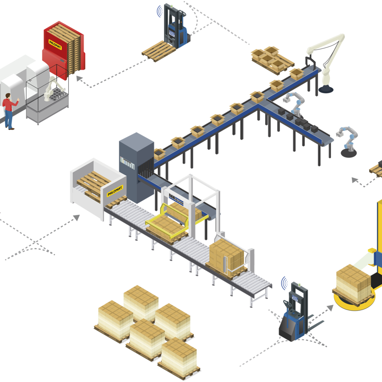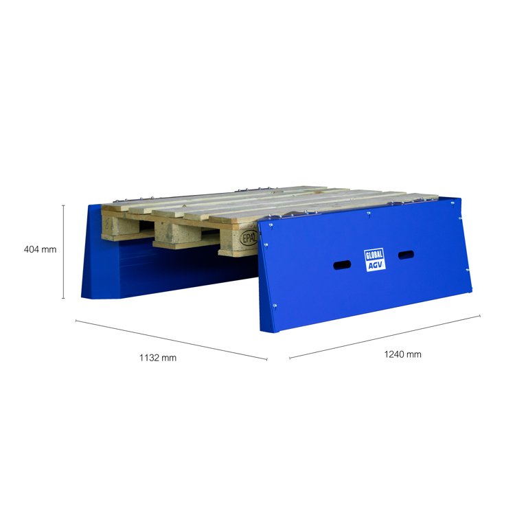 Med Global AGV Palleskifter kan en fyldt palle udskiftes med en tom palle i ét trin. Palleskifteren gør det muligt for AGVen at aflevere en tom palle under en fyldt palle, hvorefter AGVen er fri og kan afhente den fyldte palle i arbejdsgangen. Automatisk hæver Palleskifteren den tomme palle, så der igen kan palleteres på en tom palle.