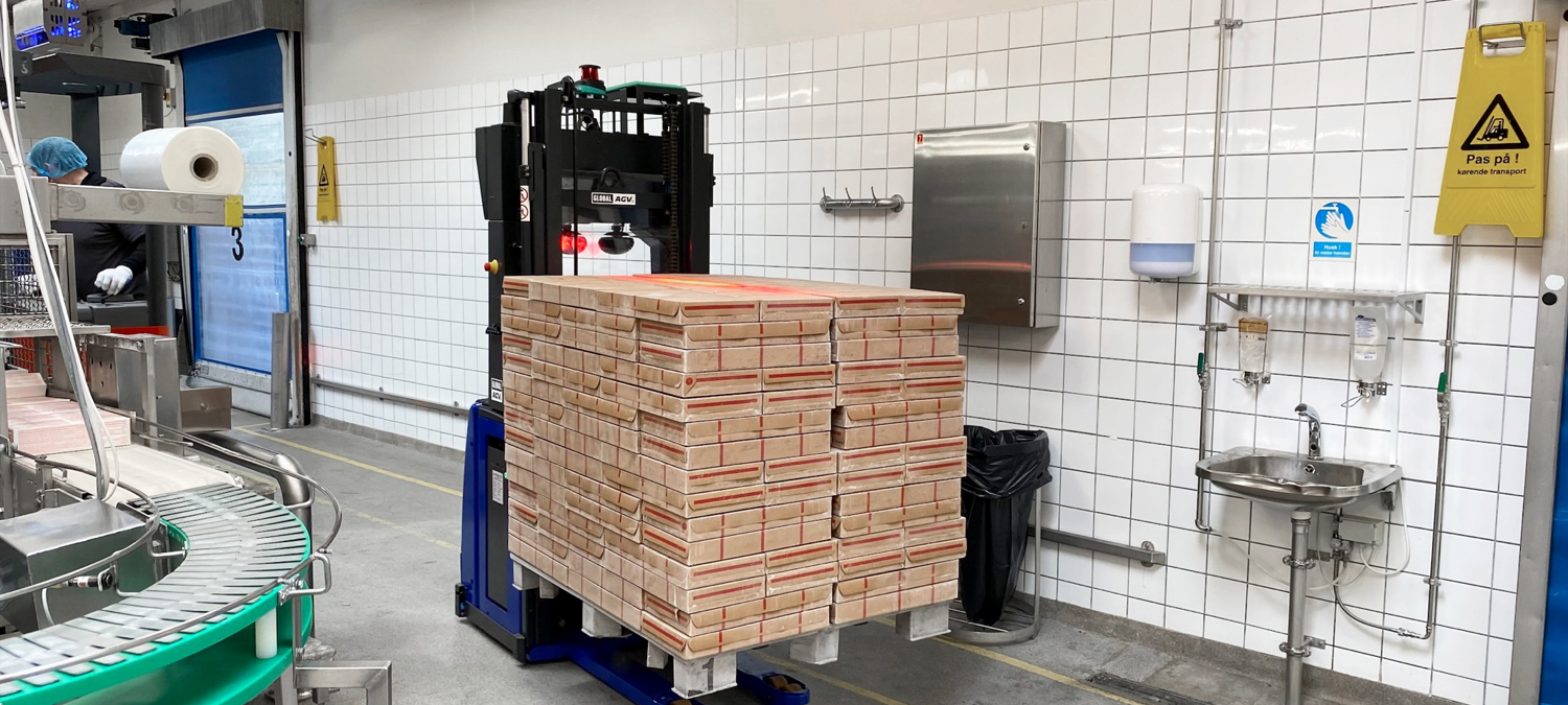 Men nu har en selvkørende, førerløs gaffeltruck, også kaldet Global AGV, løst problemstillingen i produktionen hos verdens førende producent af frosne fiskeprodukter. Som fortrukken fiskeleverandør til blandt andet McDonald’s i over 39 lande skal der leveres højkvalitetsprodukter til tiden.