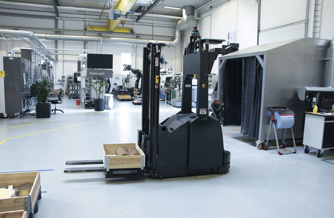 Som et led i den proces indsatte Welltec derfor en Global AGV til at fragte råmateriale til og fra produktionsområdet.